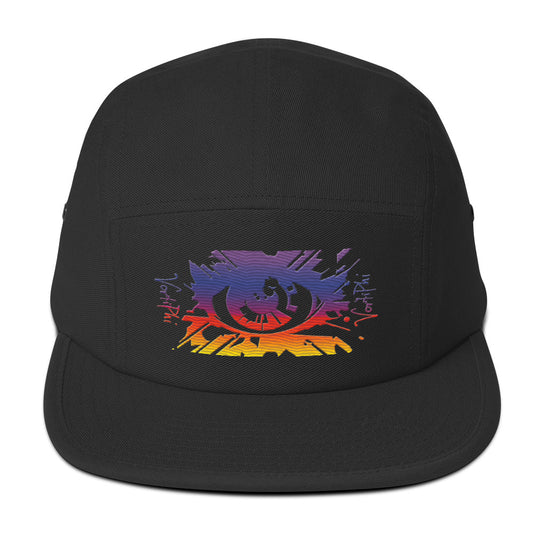 Bold Sunset Five-Panel Cap with Artistic Eye Design