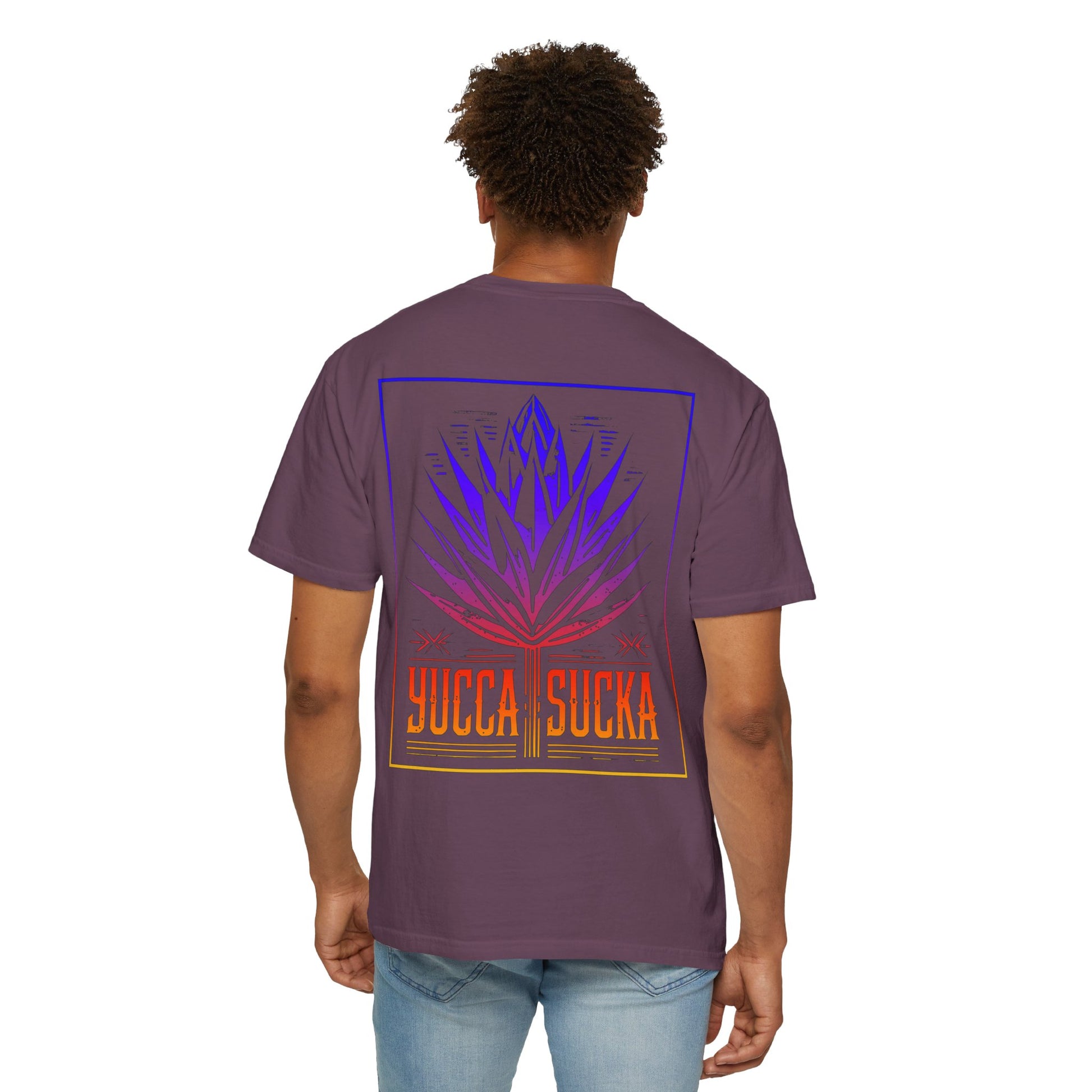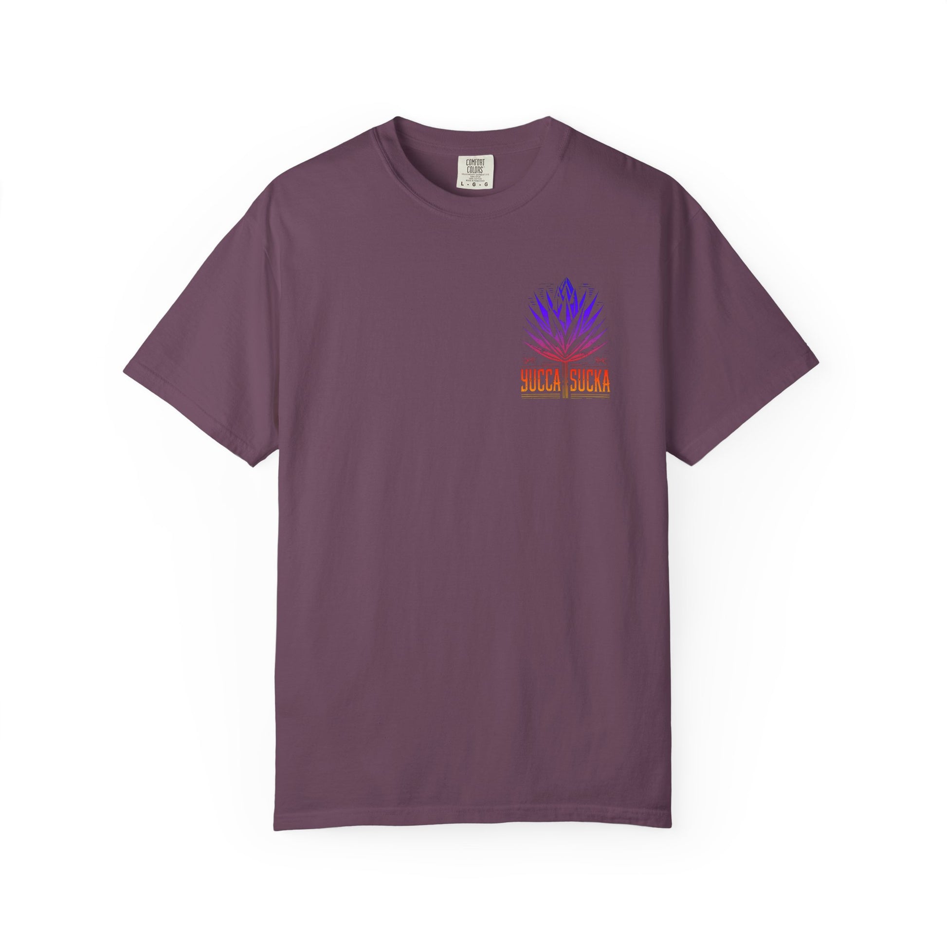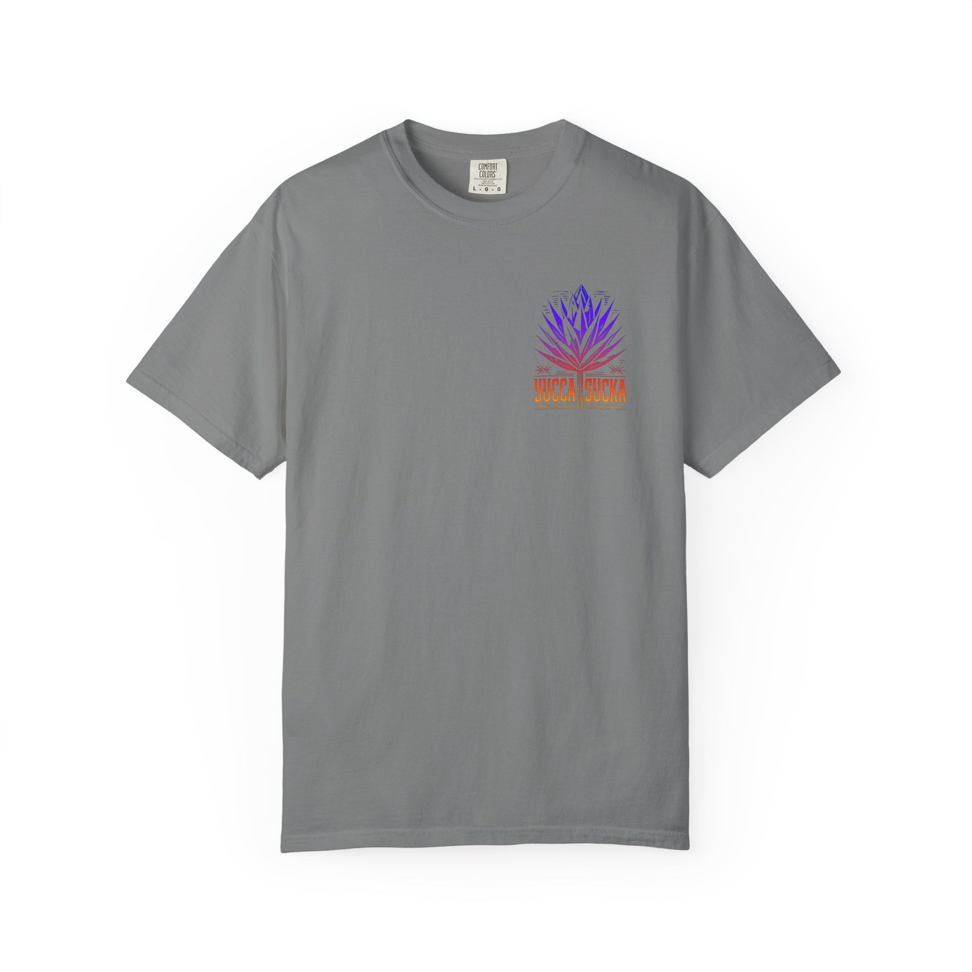 Embrace the spirit of the desert with this "Yucca Sucka" graphic tee, featuring a striking agave design on the back. With vibrant gradient colors and bold typography, this t-shirt is perfect for those who love Southwest style and want to make a statement. Ideal for casual wear or outdoor adventures, it’s available in various color options to match your vibe.