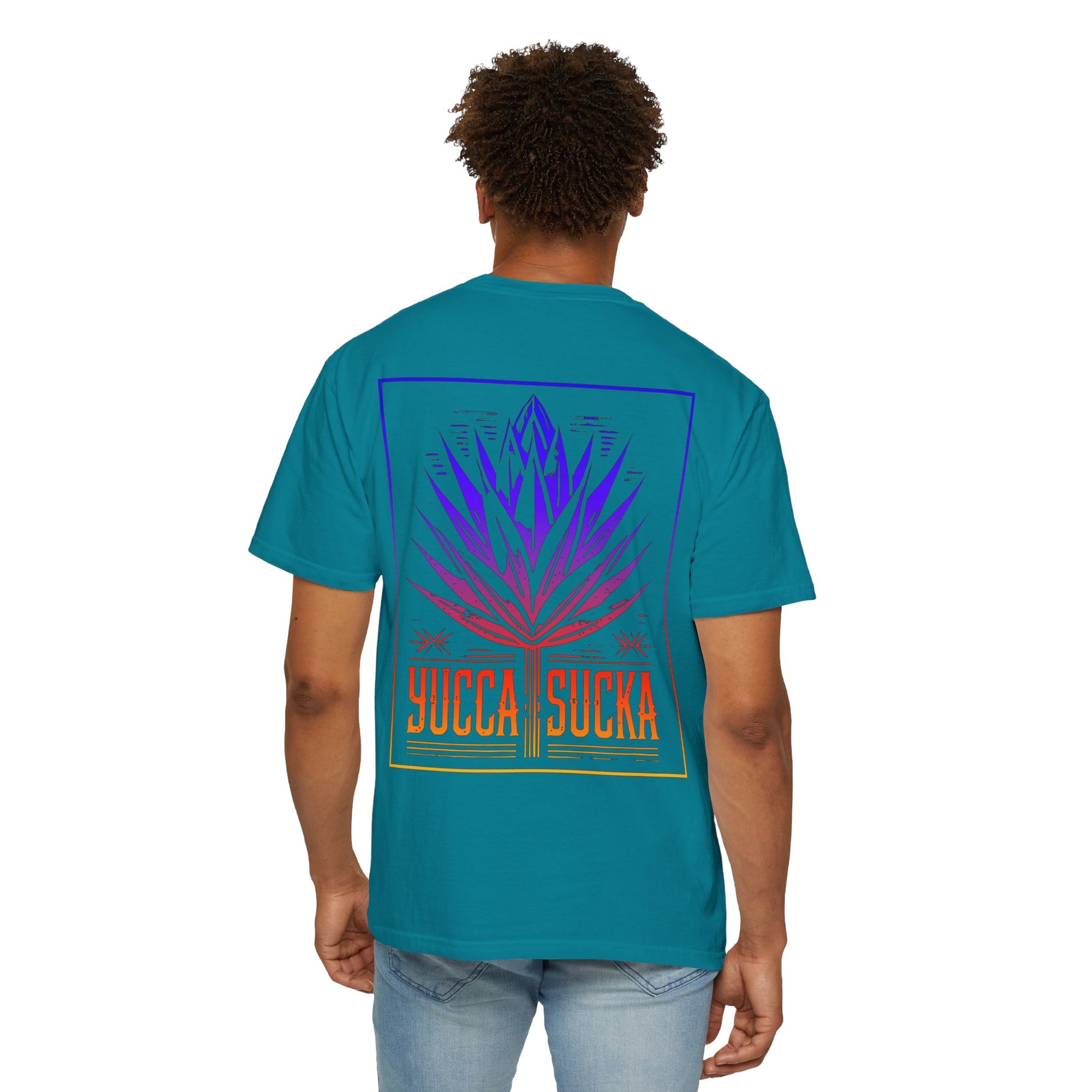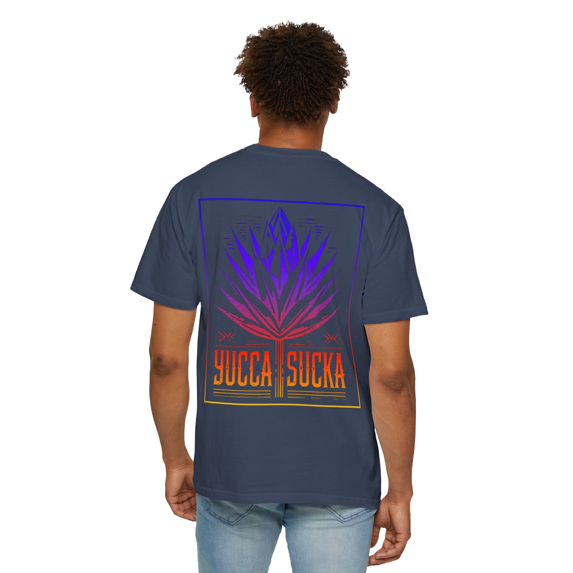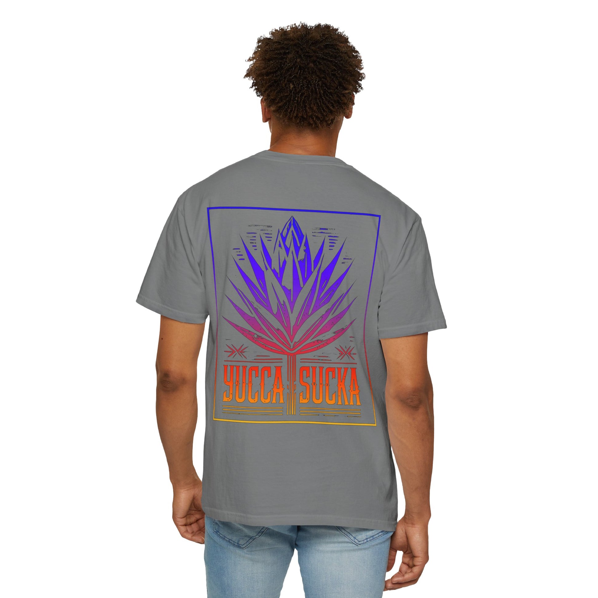 Embrace the spirit of the desert with this "Yucca Sucka" graphic tee, featuring a striking agave design on the back. With vibrant gradient colors and bold typography, this t-shirt is perfect for those who love Southwest style and want to make a statement. Ideal for casual wear or outdoor adventures, it’s available in various color options to match your vibe.